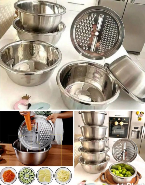 5 لگن استیل و یک عدد رنده استیل