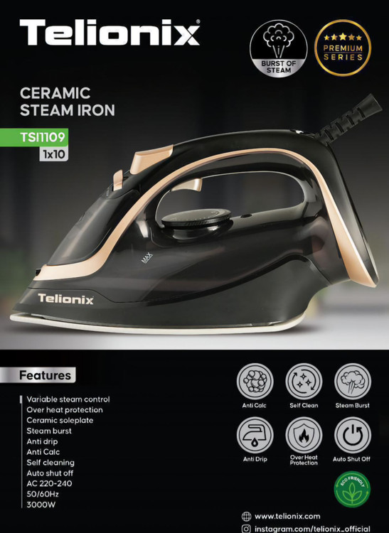 اتو بخار تلیونیکس TSI 1109 با ترکیب قدرت بالا، فناوریهای پیشرفته و کاربری آسان، انتخابی ایدهآل برای خانههای مدرن است. این محصول با کفی سرامیکی و سیستم بخار قوی، اتوکشی را به تجربهای لذتبخش تبدیل میکند.