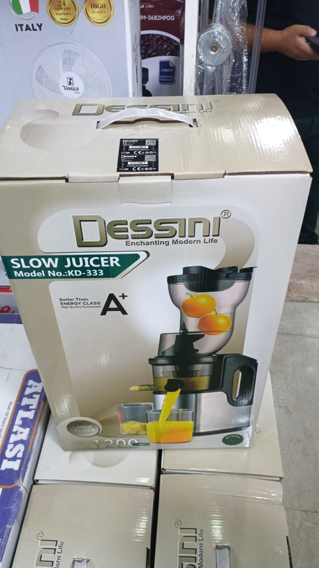 با فشرده سازی میوه و سبزیجات، به طور کامل تفاله را از آب جدا می کند و می توان خالص ترین آبمیوه ها را با حفظ ویتامین ها، برای خود و خانواده تهیه کرد. این آبمیوه گیری دسینی با بهره گیری از پایه های ضد لغزش، یک محیط امن و آرامی را برای آب گیری فراهم می کند. این دستگاه منحصر به فرد، خوردن میوه ها و سبزیجات را برای شما آسان می کند و سرعت چرخش 60 دور در دقیقه، منجر به کمترین تجمع گرما و اکسیداسیون شده و در نتیجه این فرآیند، آنزیم ها، ویتامین ها و مواد مغذی هرگز از بین نخواهند رفت.