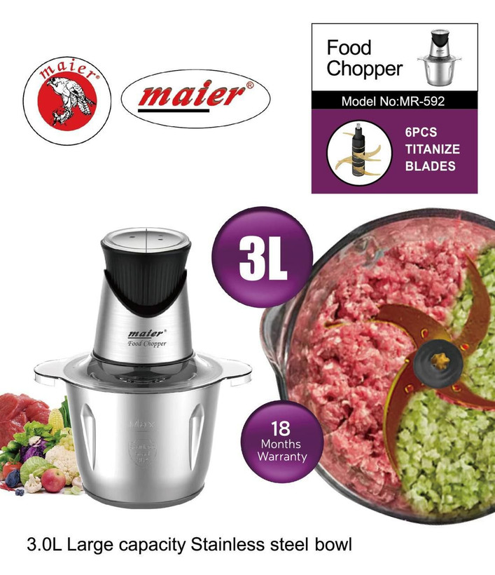 دارای 6تیغ طلایی با داشتن توان قدرتی. این خردکن امکان خرد کردن سبزیجات،گوشت ، مرغ ، پیاز، سیب زمینی ....