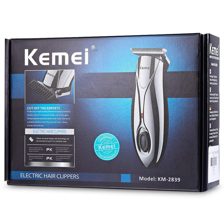 یک ماشین اصلاح دارایطراحیزیباوخوشدستمی باشد.این ریشتراشدارایتیغه های تیزیاز جنس استیل ضد زنگ است که به کاربر خود اجازه می دهد موهای به بلندی 0.1 میلی متر را نیز اصلاح نماید. موهای شمارابه صورت یکدست و به سرعت می توانداصلاحکند. km-2839 خیلی خوش دست است و به راحتی در دست جای گرفته و می توان با آن اصلاح نمود. این دستگاه دارای طراحی بدون صدا می باشد و صدای بلندیتولیدنمیکند، مخصوصا برای اصلاح موی سربچههاکه از صدای زیاد ماشین اصلاح ترس دارند